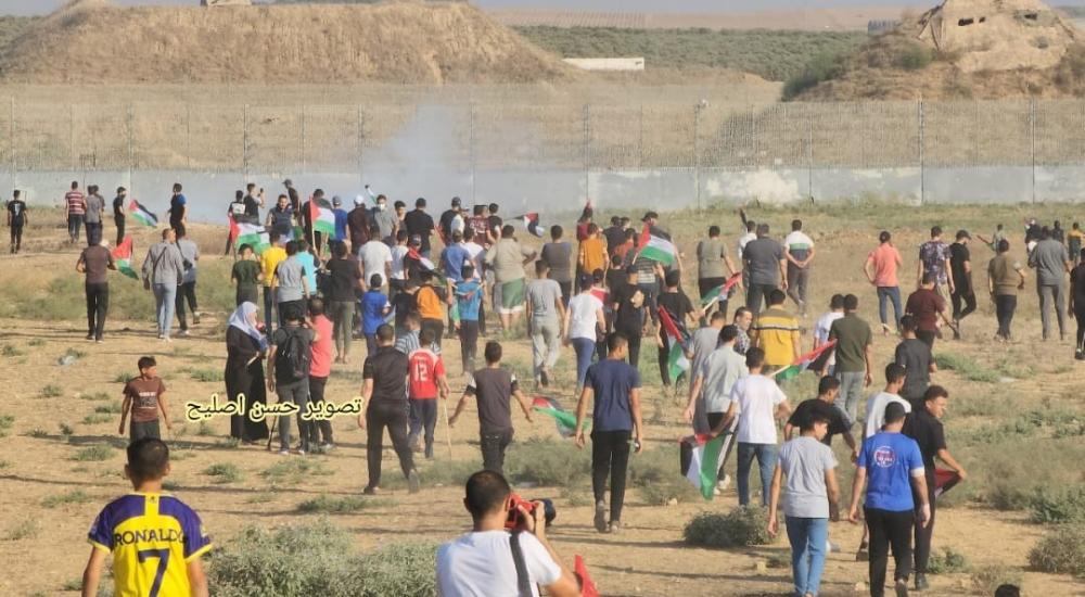 ووصلت حشود كبيرة الجدار الفاصل في مخيم العودة شرق مدينة غزة، فيما أطلق جيش الاحتلال قنابل الغاز تجاههم.
