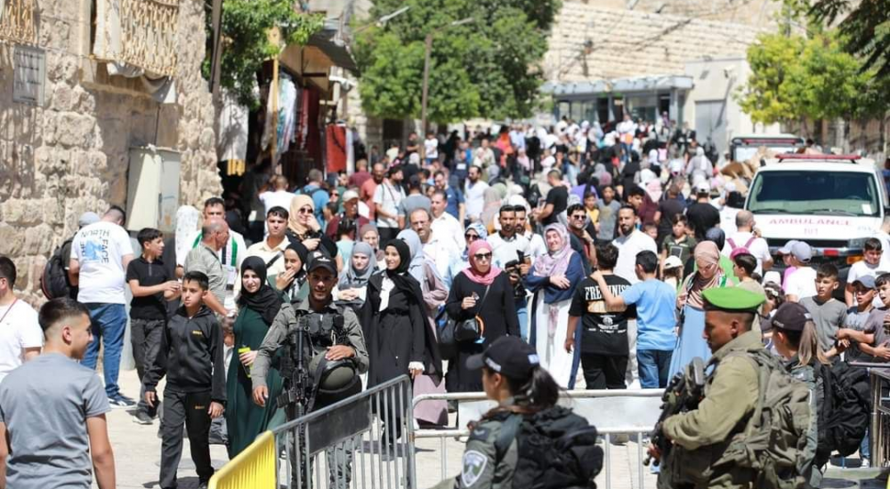وفتح المسجد الإبراهيمي اليوم كاملاً أمام الوافدين بمناسبة ذكرى المولد النبوي، وسط إجراءات أمنية مشددة لقوات الاحتلال الإسرائيلي.