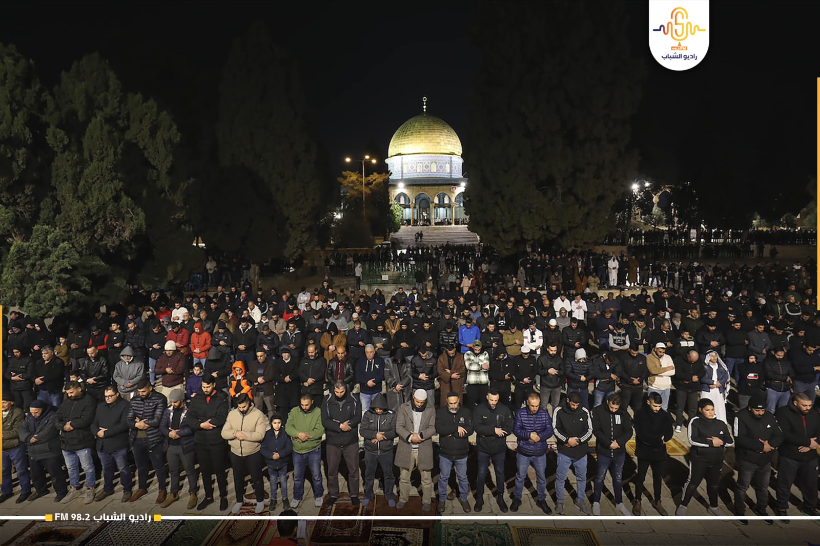 وعقب صلاة التراويح، انطلق المصلون والمعتكفون في مسيرة داخل باحات المسجد الأقصى، مرددين هتافات داعمة لغزة والمقاومة.