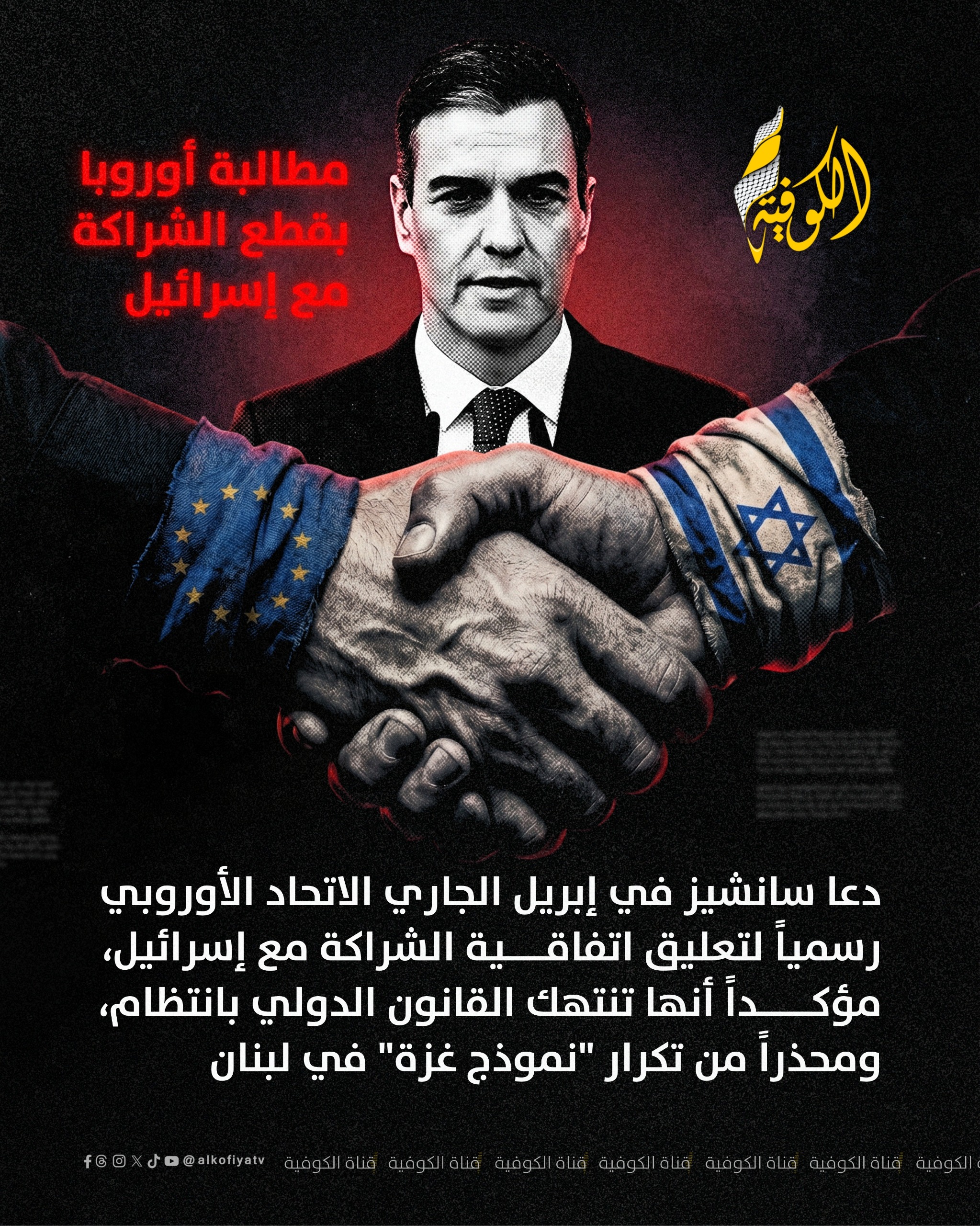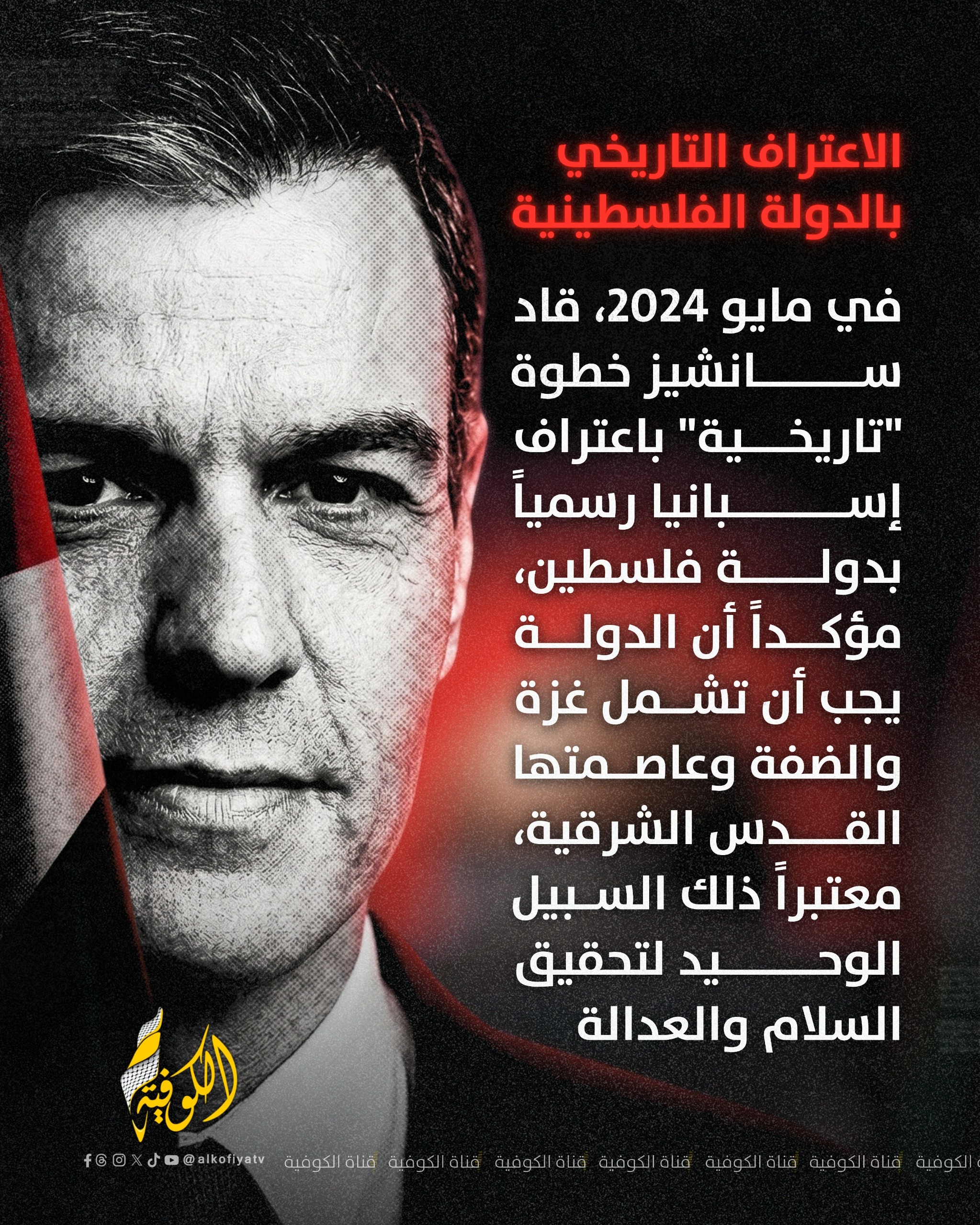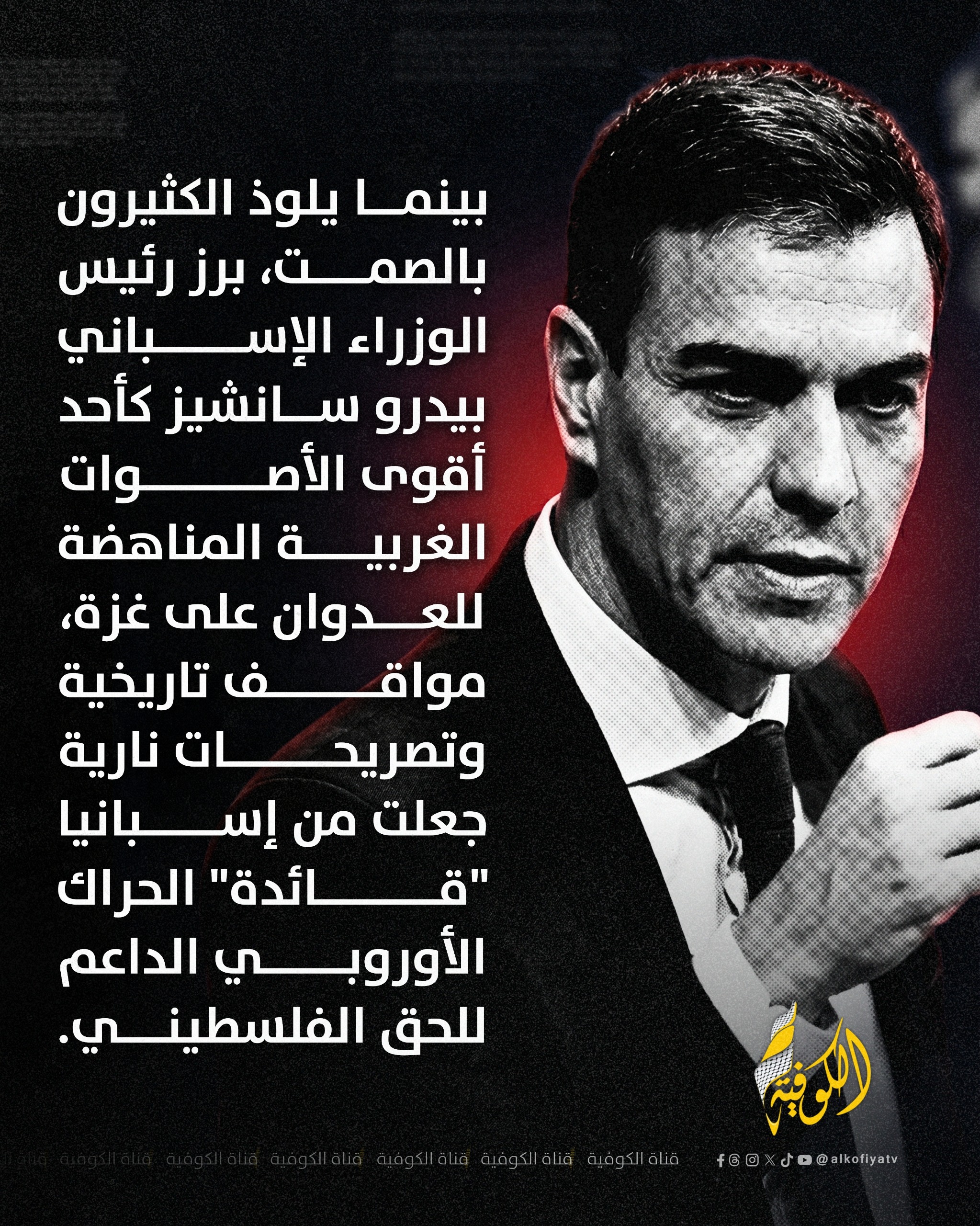 الكوفية بينما اختارت عواصم كبرى "دبلوماسية الصمت" أو الانحياز المطلق، شقّ رئيس الوزراء الإسباني بيدرو سانشيز طريقاً مغايراً.