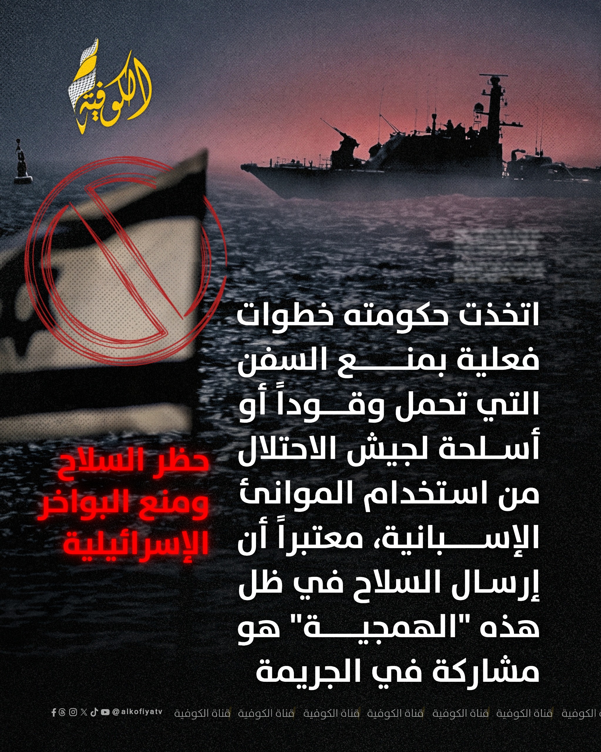 لم تكتفِ مدريد بمنع السلاح، بل أحكمت قبضتها على حدودها البحرية؛ حيث أصدرت حكومة سانشيز قرارات صارمة بمنع أي بواخر تحمل وقوداً أو عتاداً عسكرياً لجيش الاحتلال من الرسو في موانئها.