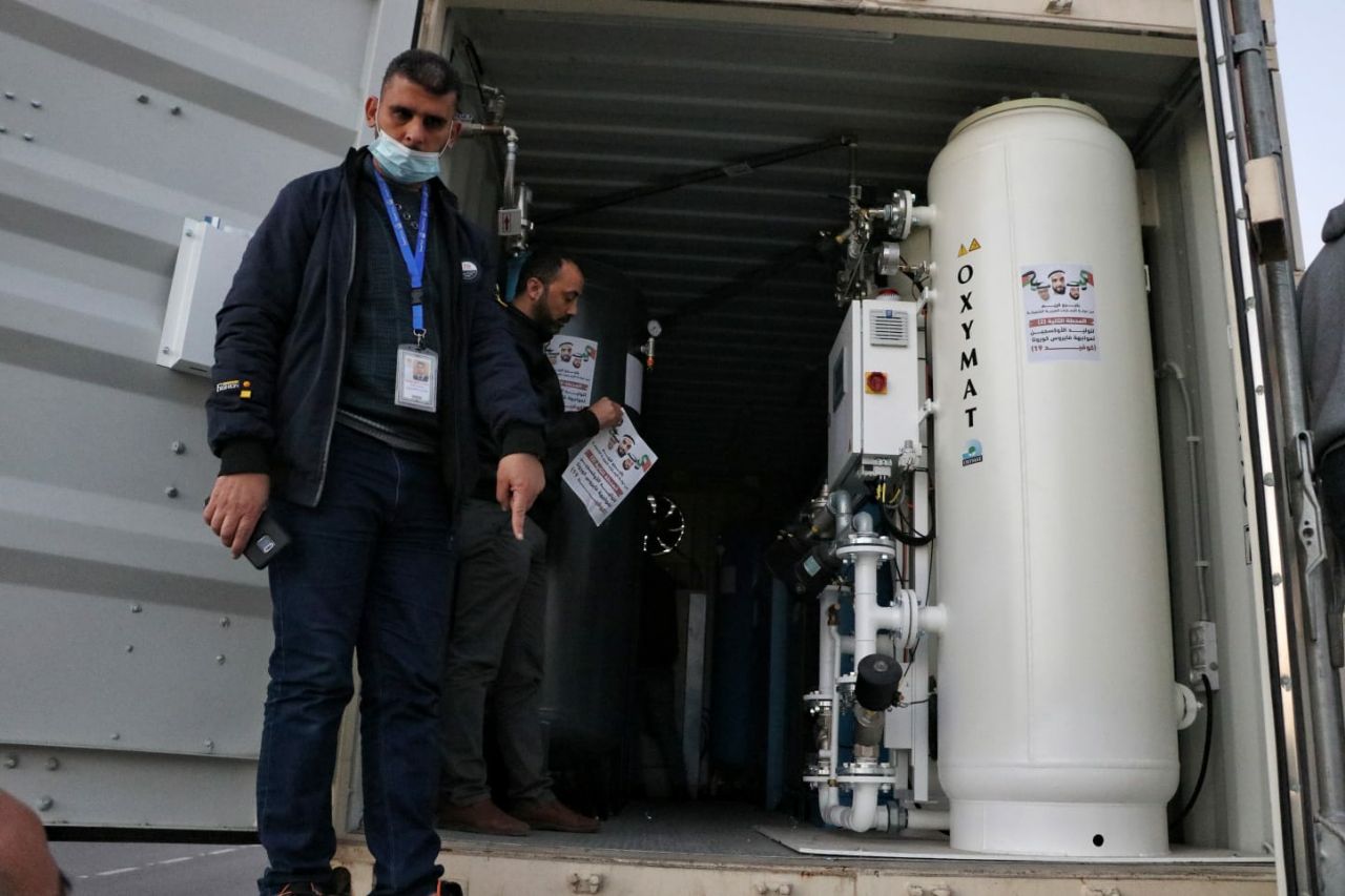 الكوفية وفي  11يناير/ كانون الثاني الماضي، وصلت المحطة الأولى لتوليد الأكسجين إلى غزة معبر رفح البري، بجهود من النائب محمد دحلان، بتبرع سخي من دولة الإمارات.