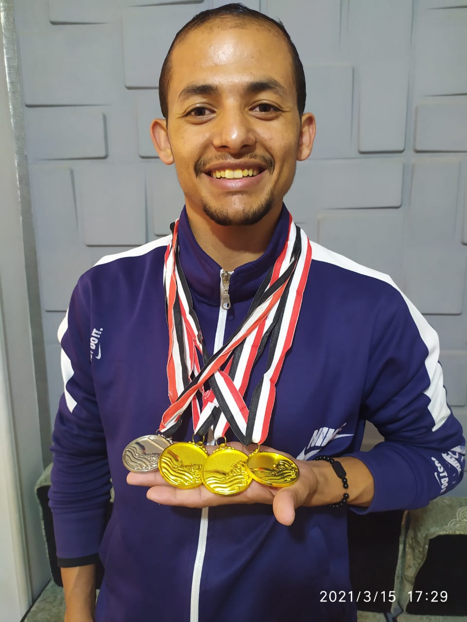 فلسطيني يحصد ثلاث ذهبيات ويحصل على الكأس ببطولة" الرحاب للسباحة" في مصر