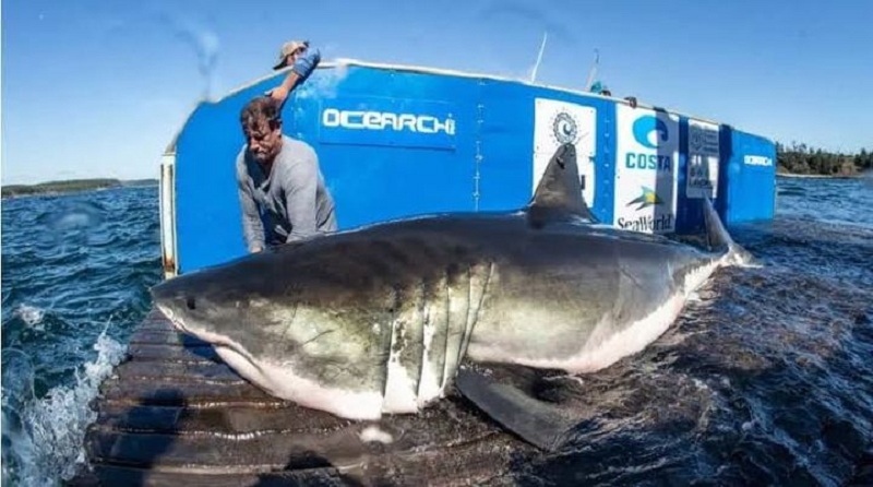 بالصور|| أضخم سمكة قرش أبيض تعبر الأطلسي وتهدد الشواطئ