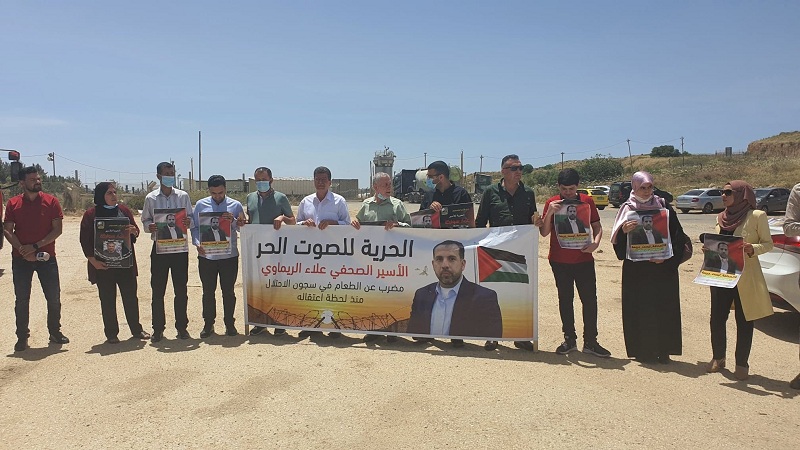 وقفة تضامنية مع الأسير الصحفي المضرب الريماوي أمام سجن عوفر