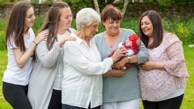 وكالات: ولدت البريطانية ماري مارشال، 86 عامًا، وهي أم لثمانية أبناء، قبل الحرب العالمية الثانية بأربع سنوات، وتمتد العائلة الضخمة عبر 6 أجيال من ماري إلى أصغر أفرادها نيلا فيرجسون، التي تبلغ من العمر أسبوعين فقط.