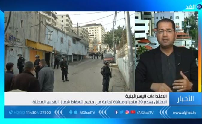 متابعات||  حذر القيادي في حركة فتح، رأفت عليان، من المخطط الإسرائيلي للسيطرة على كامل القدس، موضحًا ان قرار الاحتلال بهدم محال تجارية في مخيم شعفاط، يأتي كجزء من مخطط التغيير الجغرافي والديمغرافي الذي يسعى الاحتلال من خلاله للسيطرة الكاملة على المدينة المقدسة.
