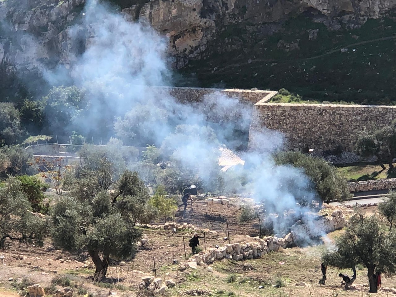 وأفادت مراسلة الكوفية، بأن قوات الاحتلال الإسرائيلي اعتدت على المواطنين، وأطلقت الرصاص المعدني المغلف بالمطاط، وقنابل الغاز المسيل للدموع تجاه المواطنين.