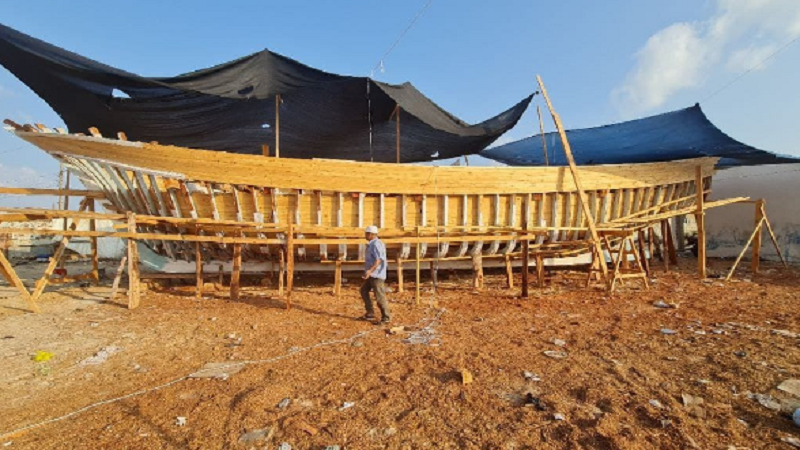 بالصور|| مواطنون يبدؤون بتجهيز أكبر سفينة في قطاع غزة