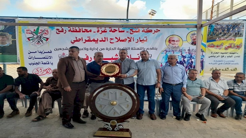 غزة: زار تيار الإصلاح في محافظة رفح؛ نادي شباب رفح الحاصل على لقب الدوري الممتاز 2021.