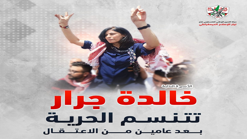 يذكر أن الأسيرة المحررة خالدة جرار 58 عامًا، حكمت بالسّجن لمدّة سنتين، وكانت وتعد جرار من أبرز الرموز السياسية والمجتمعية الفلسطينية، وقد شغلت عدة مناصب في مؤسسات المجتمع المدني، وانتخبت كنائب في المجلس التشريعي عام 2006، وشغلت فيه مسؤولة ملف الأسرى.