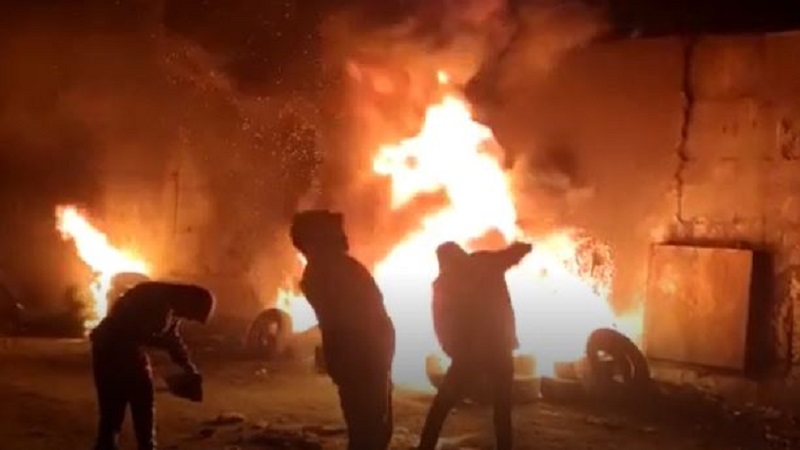 بالفيديو.. شبان يشعلون الإطارات في بلدة أبو ديس شرق القدس