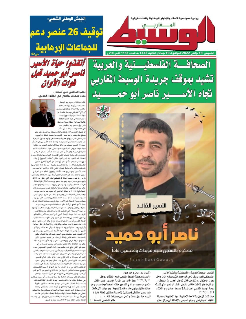«أيقونة الأسرى».. ملحق ثان عن البطل ناصر أبو حميد بصحيفة «الوسيط المغاربي» الجزائرية