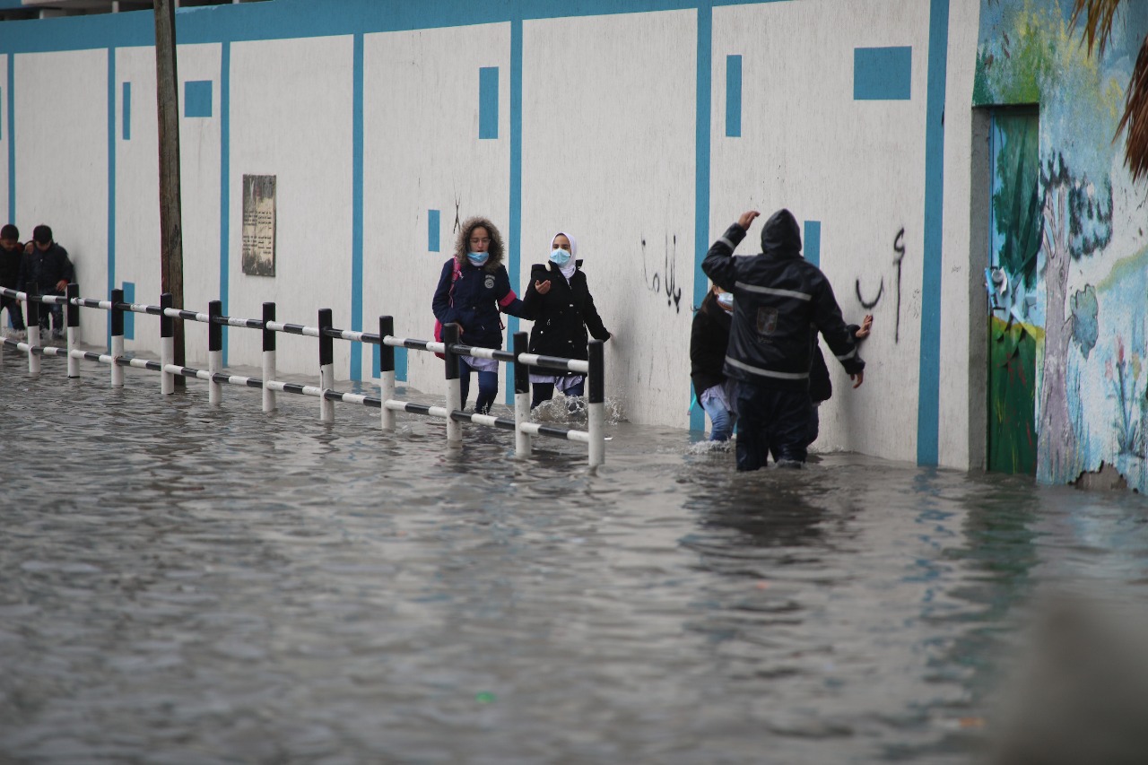 ويتعرض قطاع غزة اليوم لمنخفض جوي بارد يشمل تساقط أمطار غزيرة في مناطق متفرقة من القطاع، أدى لغرق بعض الشوارع وتعطيل الحركة فيها.