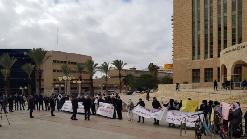 النقب: تظاهر أهالي النقب والمناصرين لهم من النشطاء والقيادات العربية، اليوم الخميس، لليوم الـ5 أمام مبنى المحاكم في مدينة بئر السبع، احتجاجًا على استمرار حملات الاعتقالات التي تنفذها شرطة الاحتلال منذ بداية الاحتجاجات على تجريف وتحريش أراضي النقب، وطالت نحو 150 شابا وفتاة بينهم قاصرون.