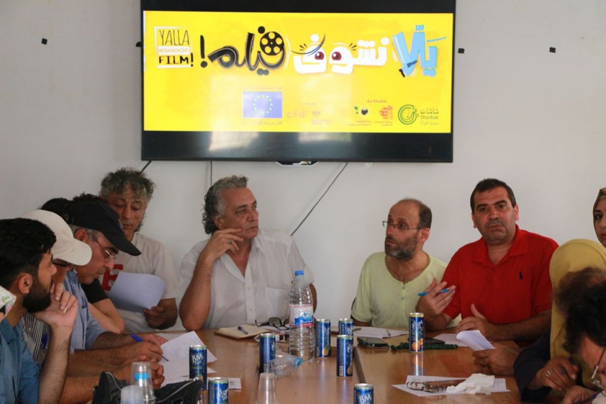 و افتتح ميسر الورشة محمد أبو كويك اللقاء بتقديم تعريف عن المشروع والنشاط واهمية العلاقة مع مؤسسة شاشات سينما المرأة وتقديم برُموشن عن المشروع.