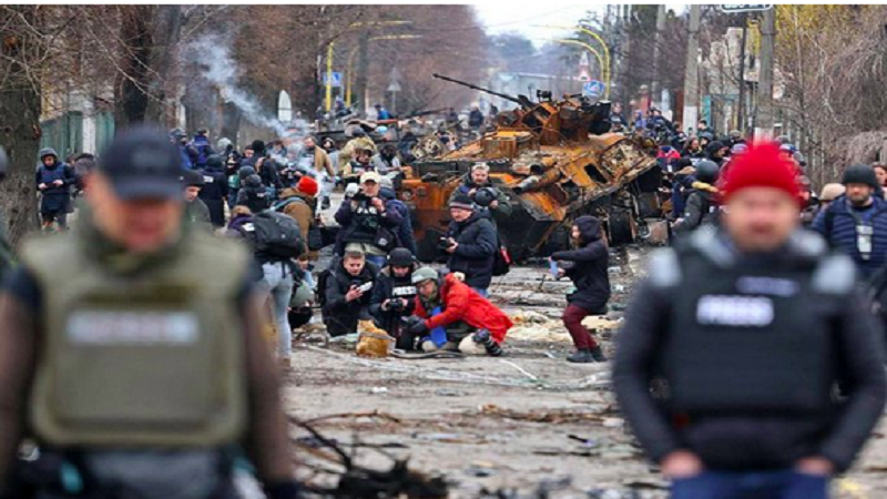 وكان الوزير يتحدث عن تغريدة تضمنت عبارة "موقع تصوير" في حين أن موسكو تندّد بـ"فبركة" مشاهد جثث منتشرة في شوارع بوتشا.