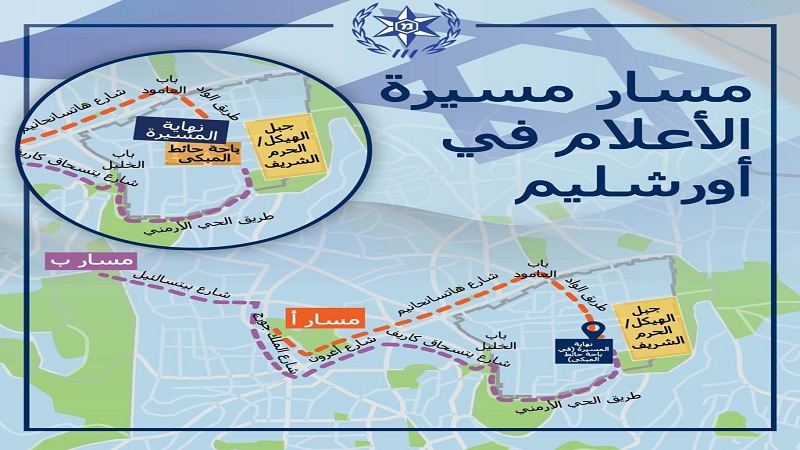 الاحتلال ينشر صورة توضح مسار "مسيرة الأعلام" الاستفزازية في القدس