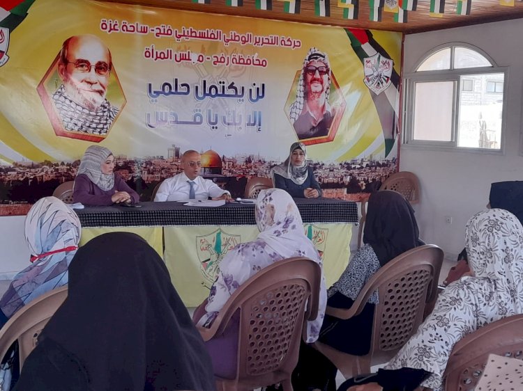 غزة: عقد مجلس المرأة بحركة فتح في محافظة رفح، اليوم الأربعاء، لقاء حول ذكرى النكبة بعنوان "كي لا ننسى"، بقاطع وسط محافظة رفح.