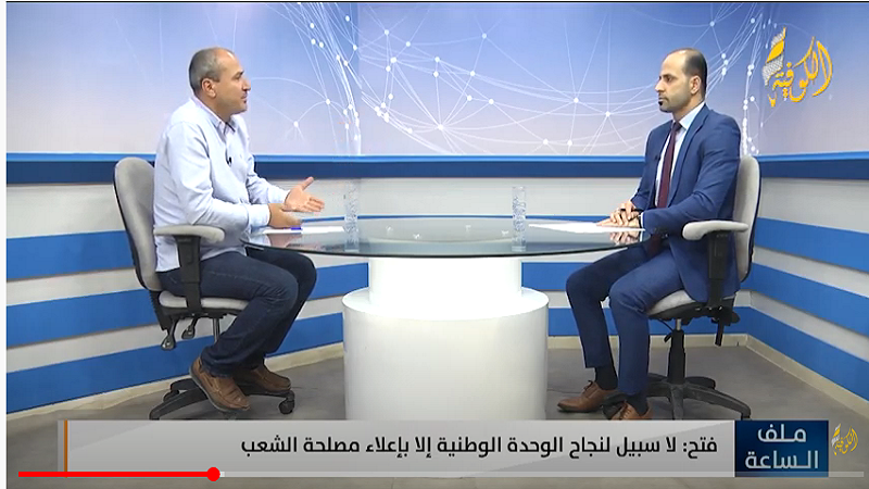 وأضاف، في برنامج " ملف الساعة" على قناة "الكوفية"، أن الانقسام أدى إلى انقسام النظام السياسي بين الضفة وقطاع غزة، وانعدام الرؤية السياسية والبرنامج الوطني، لمواجهة التحديات المحدقة بالقضية الفلسطينية.