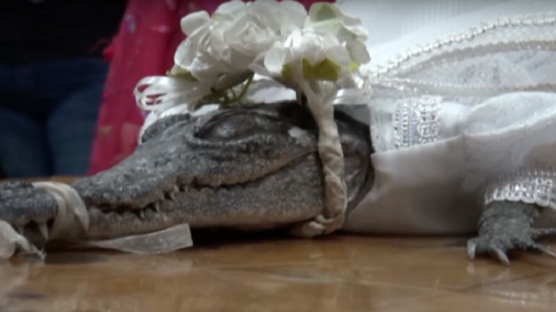 مكسيكو: ذكرت صحيفة "ديلي ميل" البريطانية، أن عمدة مدينة سان بيدرو المكسيكية، هواميلولا فيكتور هوغو سوس، تزوج من تمساح كان يرتدي فستان أبيض اللون وسط حفل صاخب.