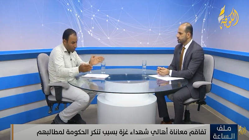 وأوضح البراوي، خلال لقائه في برنامج «ملف الساعة»، على قناة «الكوفية»، اليوم الخميس، أنه تم تحويل صرف مستحقات أسر شهداء عدوان 2014 من الشؤون الاجتماعية، دون موافقة الأهالي.