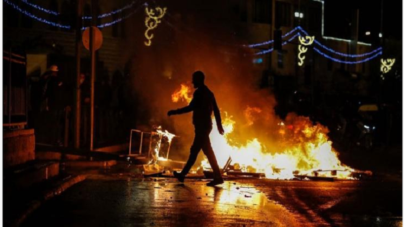واندلعت مواجهات في بدو شمال غرب القدس، وتخللها إلقاء حجارة صوب قوات الاحتلال.