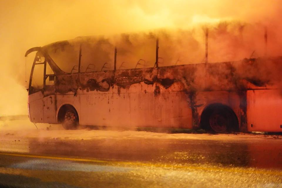 وأضاف، "اصطدمت المركبتان واشتعلت النيران فيهما علما بأنهما كانتا تقلان ركابا واحترقتا إلى حد لا يمكن إصلاحهما".