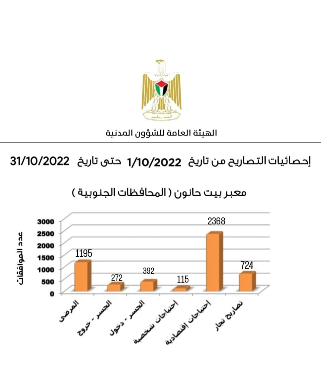 «الشؤون المدنية» تنشر إحصائية المرور من معبر بيت حانون خلال الشهر الماضي