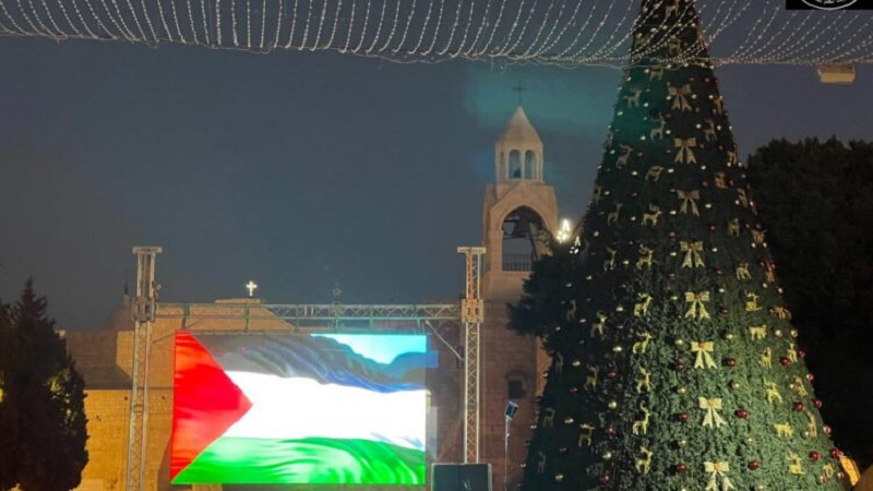 الكوفية بيت لحم: يحتفل آلاف المسيحيين الفلسطينيين، اليوم السبت، بإضاءة شجرة عيد الميلاد في ساحة كنيسة المهد ببيت لحم.