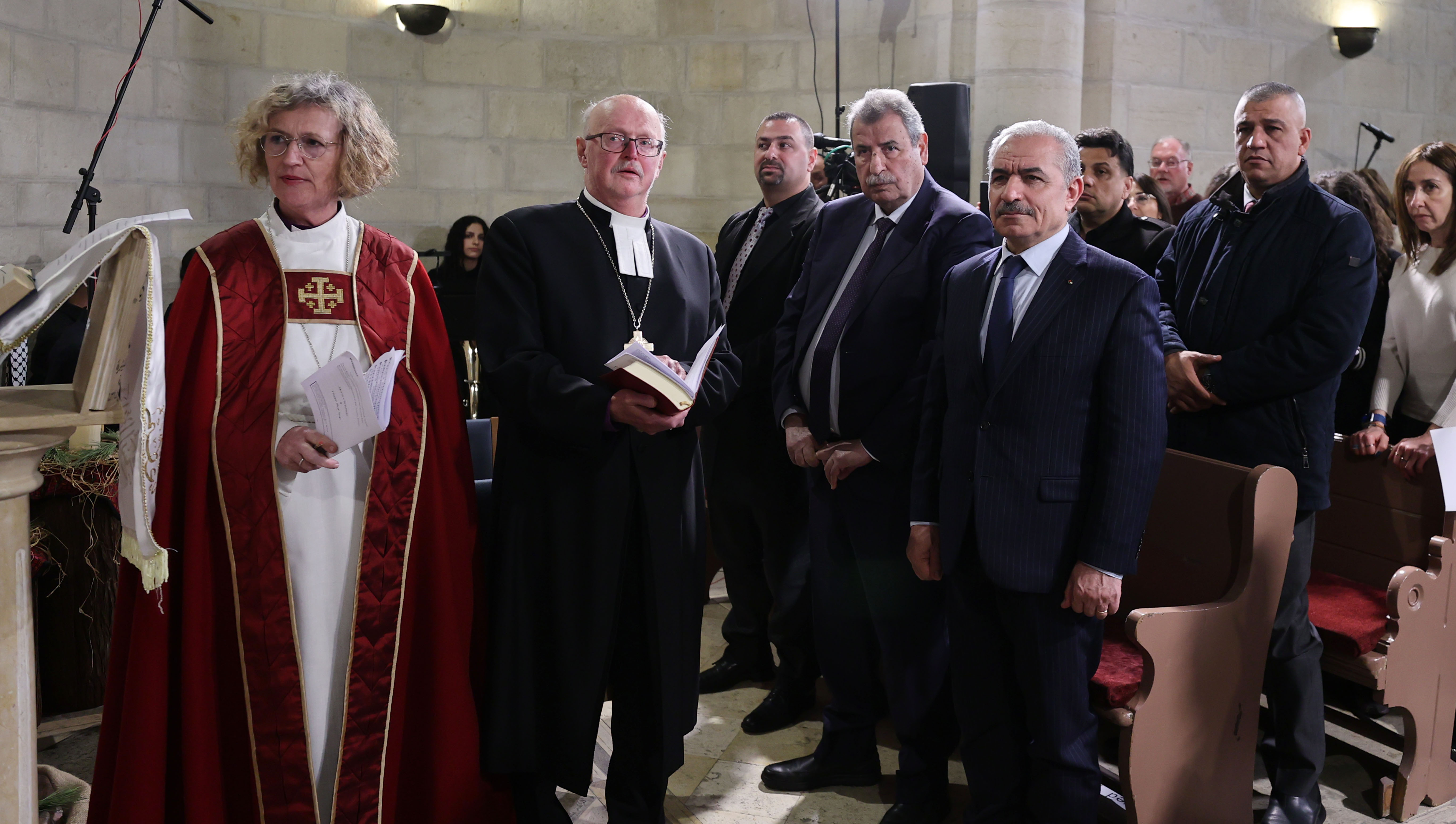 اشتية يشارك في قداس عيد الميلاد في كنيسة الميلاد الإنجيلية اللوثرية