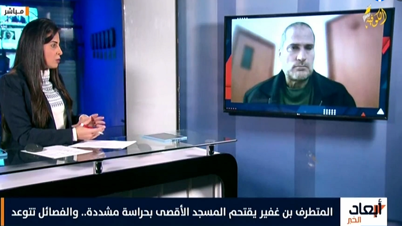 وأضاف في مقابلة على قناة «الكوفية»، خلال برنامج «أبعاد الخبر»، أن "تدنيس المسجد الأقصى وتهويد القدس وتهجير أهلها ضمن أيدلوجيا وأفكار جماعته التي انتخبته، وهو يقوم بتثبيت برنامجه الانتخابي من خلال التنفيذ على أرض الواقع".