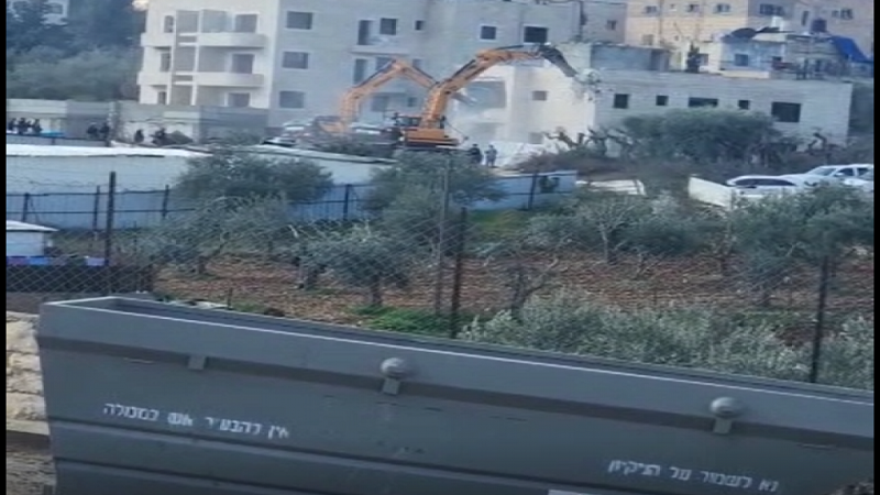 وأفادت مصادر محلية، بأن قوات الاحتلال حاصرت المكان من جميع الجهات وشرعت بهدم المبنى المكون من طابقين.