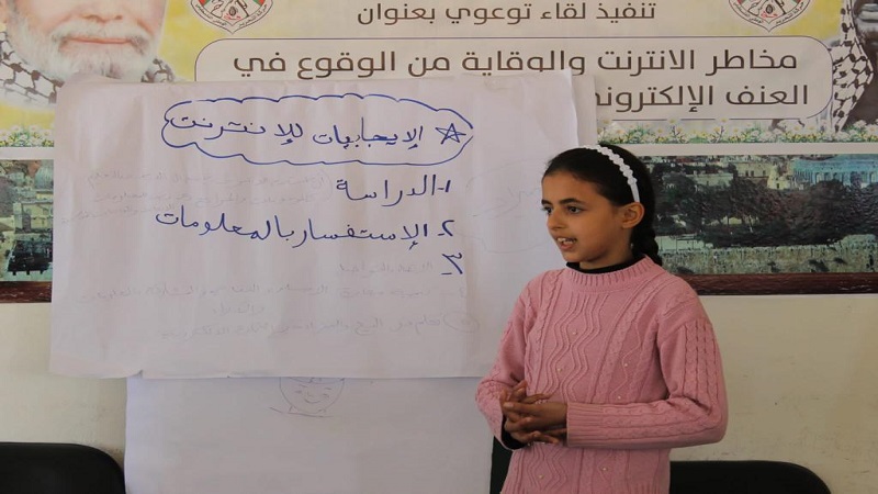 وتحدثت أمين سر لجنة الأشبال والزهرات بمحافظة خانيونس عبير أبو ناموس، عن مخاطر الانترنت وتأثيرها على الاطفال وكيفية الوقاية منها.