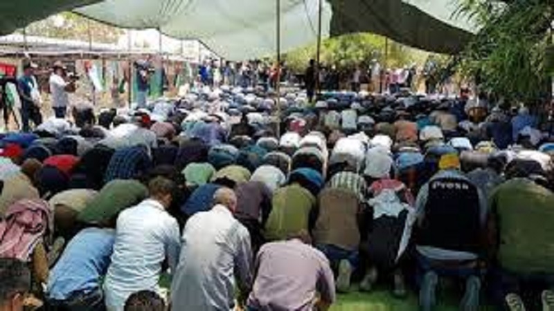 مواطنون يؤدون صلاة الجمعة في الخان الأحمر