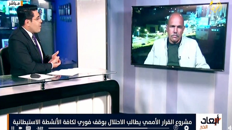 وأضاف في مقابلة على قناة «الكوفية»، خلال برنامج «أبعاد الخبر»، أن " دولة الاحتلال تأمن العقاب، ولا تتوقع أي عقوبات أو ضغوط دولية، ولا تولي اهتمام لمجلس الأمن"، منوهًا إلى أن معظم مشاريع الاستيطان بتمويل أمريكي.