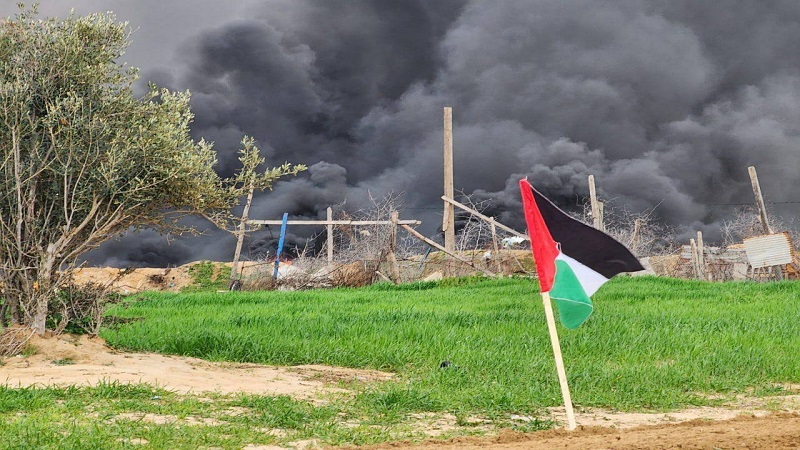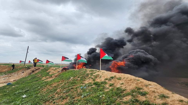 صور|| شبان يشعلون الإطارات المطاطية على الحدود الشرقية جنوب القطاع