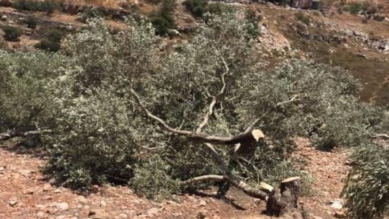 مستوطنون يقتلعون 80 شجرة زيتون شرقي سلفيت