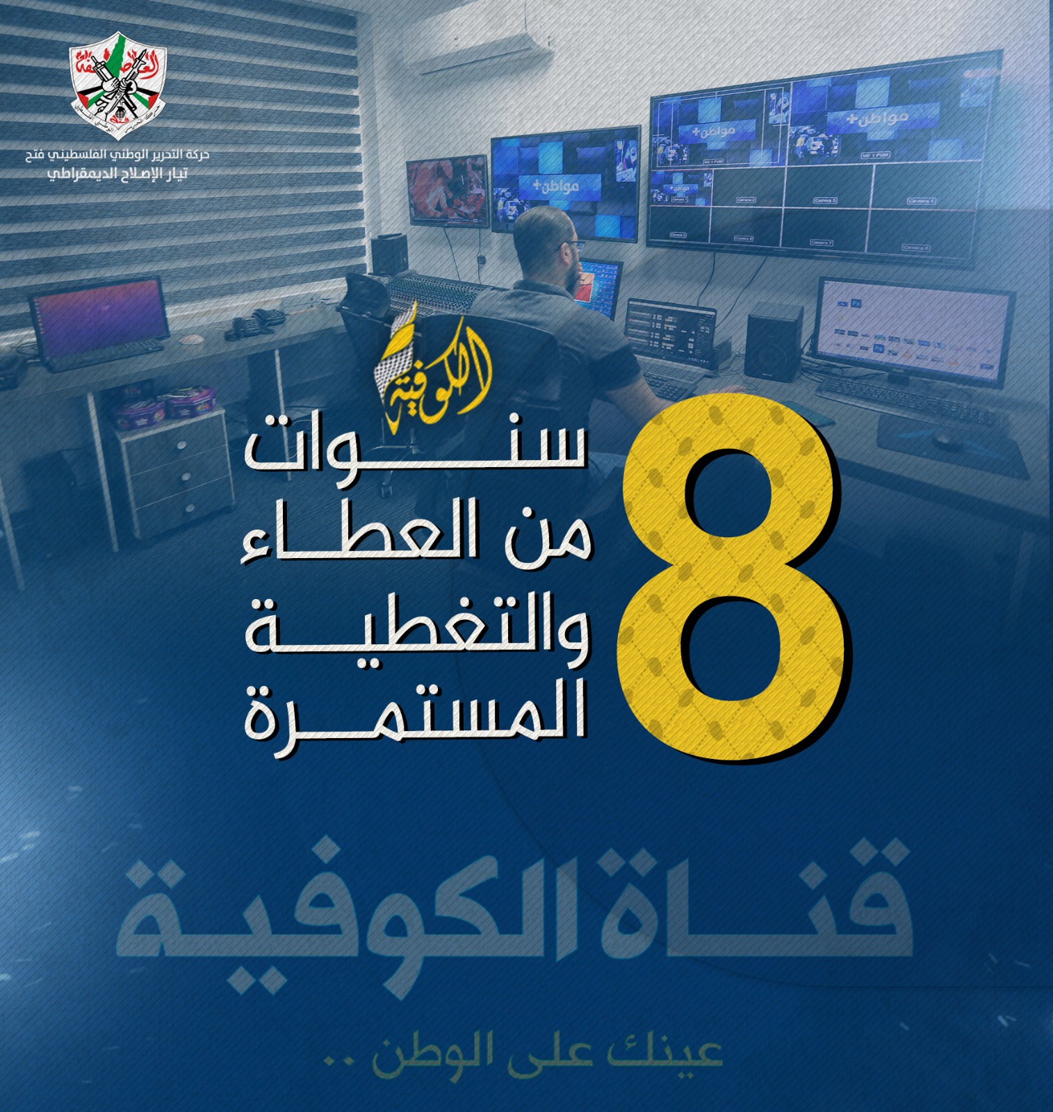 الكوفية غزة: أطلق تيار الإصلاح الديمقراطي في حركة فتح، اليوم الأربعاء، حملة إلكترونية عبر مواقع التواصل الاجتماعي، مناسبة مرور 8 سنوات على انطلاق قناة الكوفية الفضائية، وافتتاح المقر الجديد للقناة بمدينة غزة.