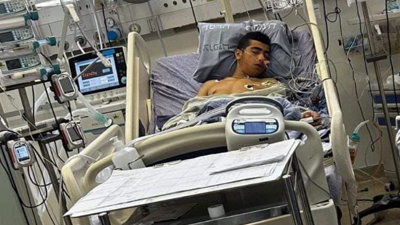 وأضافت، "بقي الأسير واقفاً على قدميه، حيث قام شبان بحمله ونقله مباشرة إلى مستشفى المقاصد، لكن على باب المستشفى وصلت دورية شرطة ولم يسمحوا لهم بإدخاله وأخذوه من بينهم، ووضعوه في سيارتهم وهو ينزف بشدة، تارة يغمى عليه وأخرى يستفيق متألماً، وبعد وقت وصل إلى مستشفى هداسا، حيث خضع لعدة عمليات وبقي هناك لمدة أسبوعين، ممدداً على السرير ومقيد القدمين ويد واحدة بقيود حديدية، وبجانبه شرطيان لم يسمحوا لأهله بزيارته و الاطمئنان عليه. كما تم التحقيق معه على الرغم من وضعه الصحي الصعب".