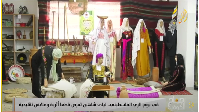 صباح الكوفية| في يوم الزي الفلسطيني.. ليلى شاهين تعرض قطعا أثرية وملابس تقليدية