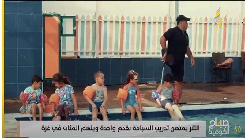 صباح الكوفية| التتر يمتهن تدريب السباحة بقدم واحدة ويلهم المئات في غزة