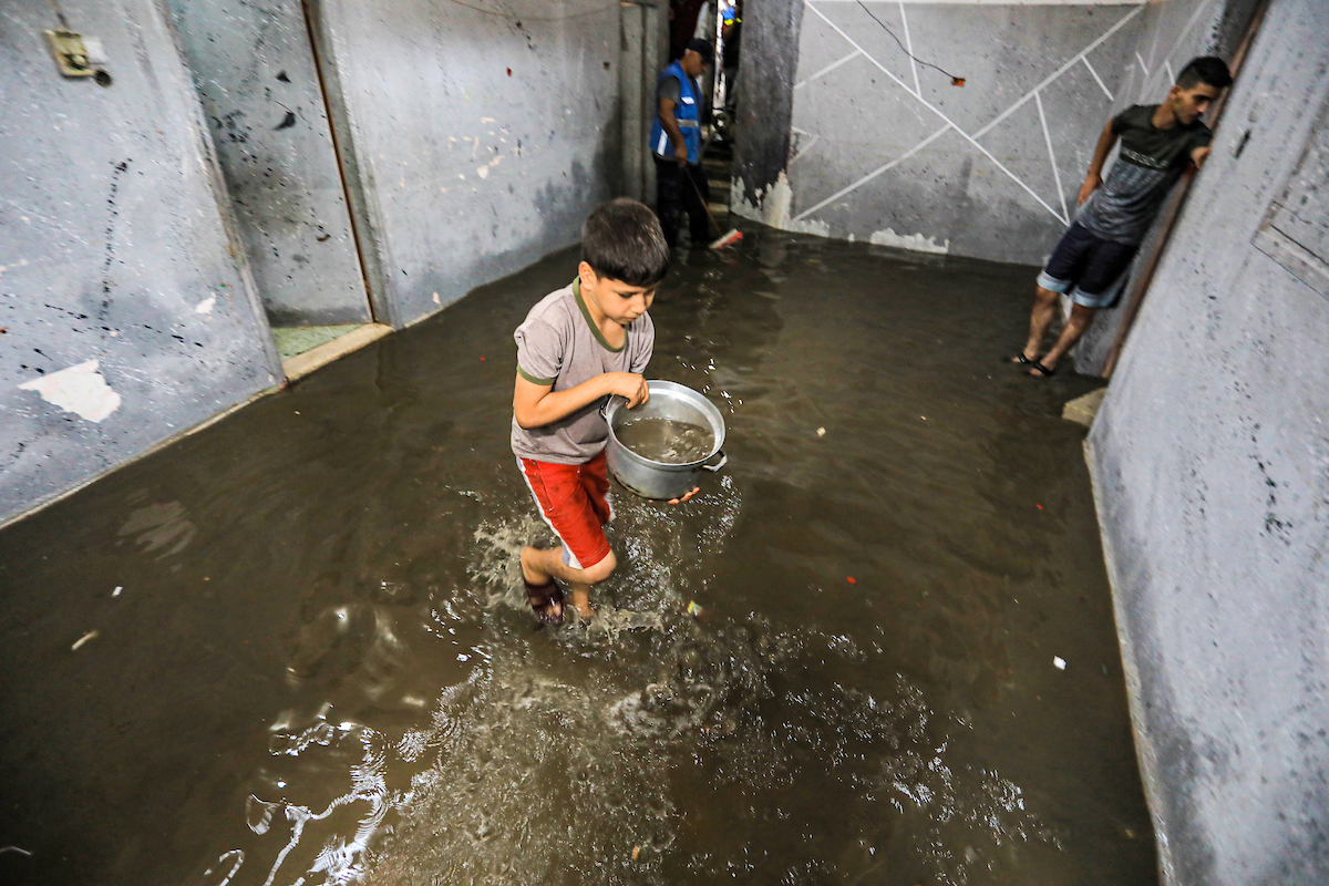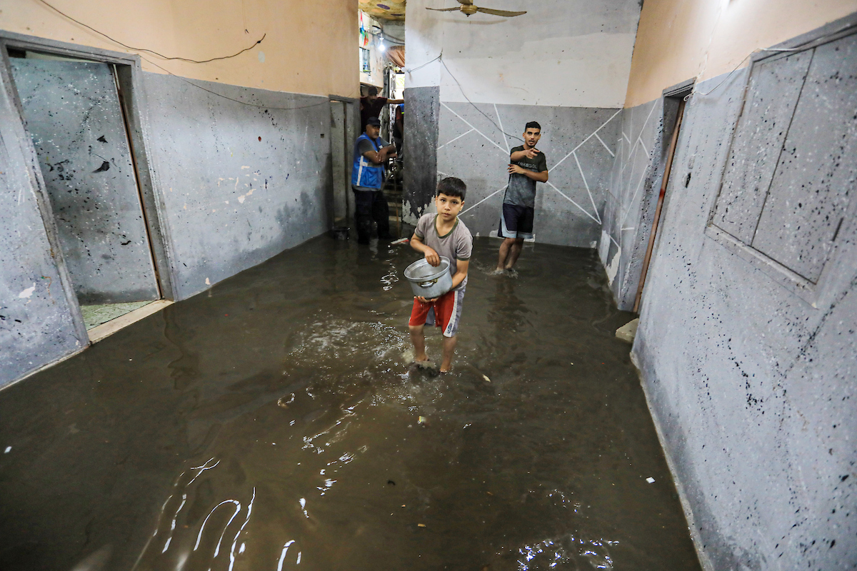 فيديو وصور|| إعصار دانيال يصل فلسطين.. أمطار غزيرة تتسبب في غرق منازل شمال غزة