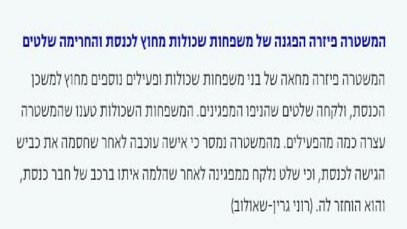 ترجمة خاصة للكوفية: ذكرت صحيفة "يديعوت أحرونوت" العبرية، اليوم الأربعاء أن الشرطة فرقت بالقوة احتجاجا لعائلات القتلى والأسرى المحتجزين لدى المقاومة، بمشاركة عدد من النشطاء الآخرين، أمام مقر الكنيست.