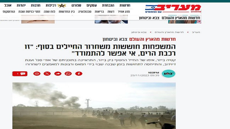 واتهمت والدة الجندي الأسير، حكومة الاحتلال، بالفشل في الدفاع عن المستوطنين خلال عملية "طوفان الأقصى"، قائلة: "اعلموا أن معظمهم على قيد الحياة، لدينا أسرى أحياء وعلينا إعادتهم، وبعد ذلك سيكون هناك كل الوقت في العالم للقيام بكل ما تخطط الحكومة للقيام به"، بسحب ما نقلته صحيفة معاريف العبرية.