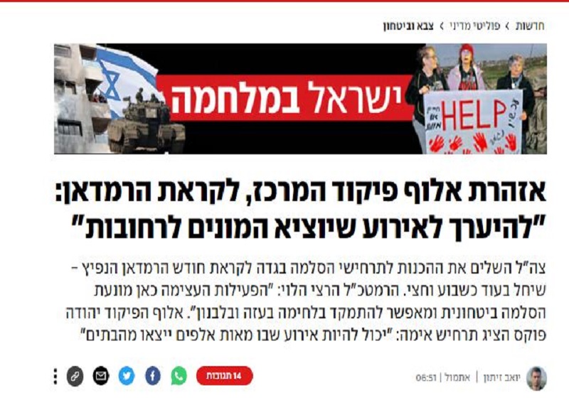 يديعوت أحرونوت: تحذير من قائد القيادة المركزية قبيل شهر رمضان