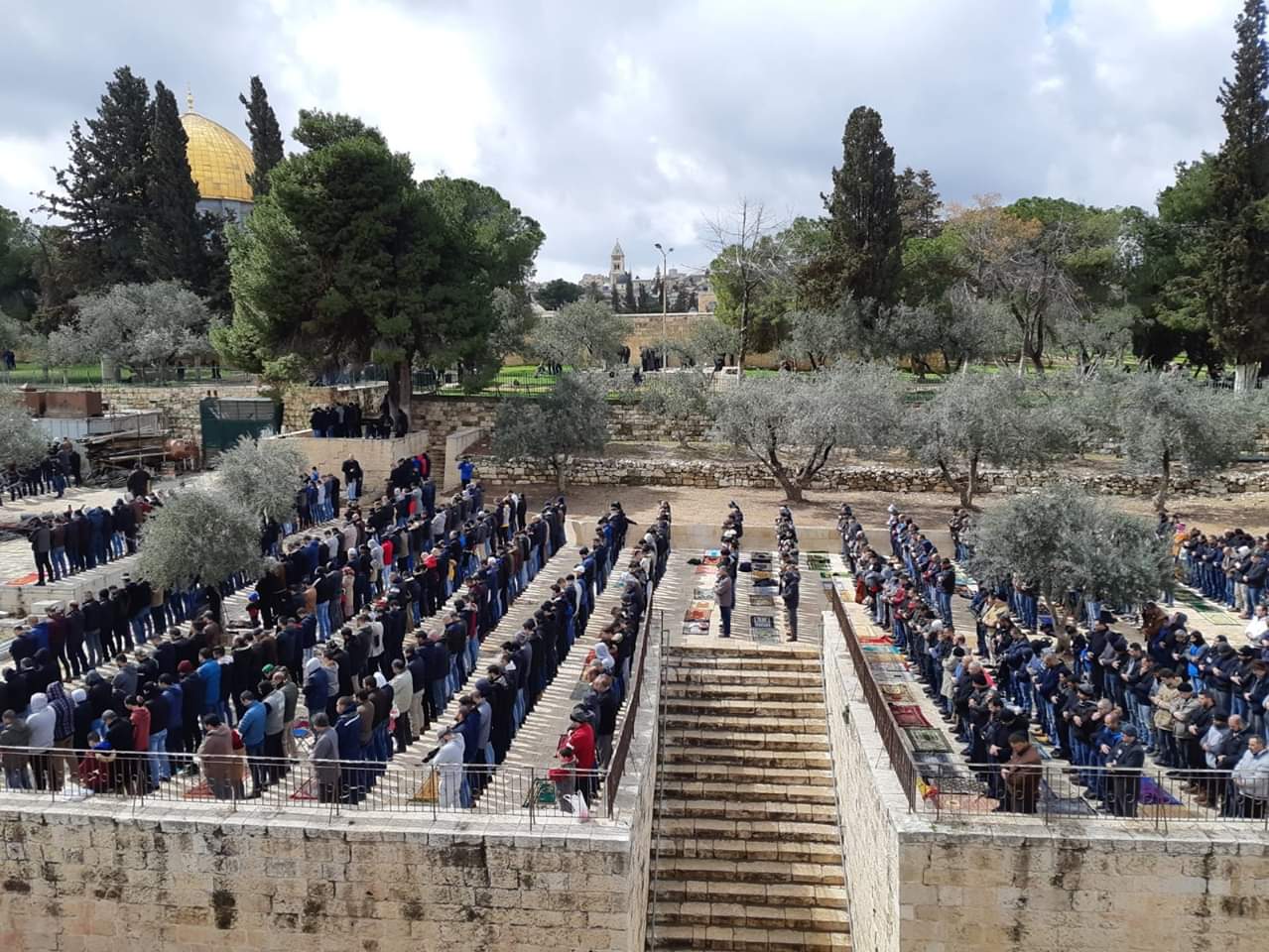 القدس المحتلة: أدى أكثر من 40 ألف مواطن، صلاة الجمعة في رحاب المسجد الأقصى بما فيه مصلى الرحمة، في حين أدى عشرات المُبعدين عن "الأقصى" صلاة ظهر اليوم في منطقة باب الأسباط (من أبواب القدس القديمة) أمام مدخل مقبرة باب الرحمة الملاصقة بالجدار الشرقي للأقصى المبارك.