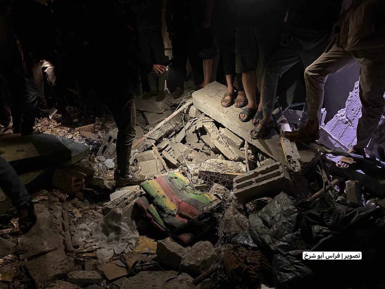 وأوضح ان عمليات البحث عن البقية توقفت جراء تحليق طائرات الاحتلال فوق المجمع.