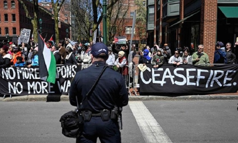 وتأتي المظاهرة في الوقت الذي ظهرت فيه احتجاجات تضامنية مع غزة في الجامعات في جميع أنحاء الولايات المتحدة، بما في ذلك جامعة كورنيل القريبة، وبعد يوم واحد من توقيع بايدن، على قانون مساعدات عسكرية غير مشروطة بقيمة 26 مليار دولار لإسرائيل.