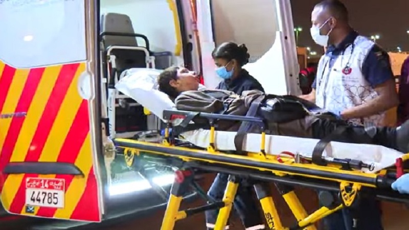 وعقب هبوط الطائرة، القادمة من مطار العريش المصري في مطار زايد الدولي، عملت الفرق الطبية على نقل الجرحى والمصابين التي تتطلب حالاتهم الرعاية الفورية إلى المستشفيات لتلقي العلاج، فيما تم نقل بقية الحالات والمرافقين إلى مدينة الإمارات الإنسانية مقر إقامتهم.